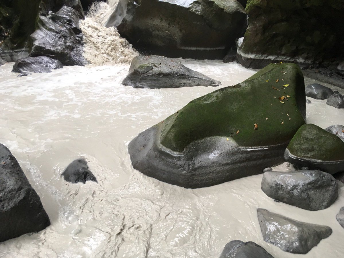 Photo:えびの高原から流入したとみられる泥で白濁した長江川上流の赤子川=25日、宮崎県えびの市 [西日本新聞/yahoo] 2018年04月29日